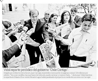 Y no es que las Curvas pensemos que el 'periódico' (12 páginas...) del asesor de imagen Juan 'La vida de los otros' Carvajal sea una arma muy potente, empezando por el nombre lame, lame, lame a más no poder: CHILE CONTIGO que sería CHILE WITH YOUUUUUU.